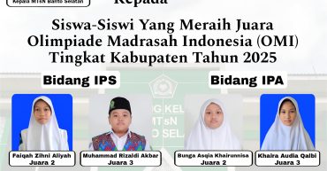 [UKIR PRESTASI MEMBANGGAKAN SISWA MTsN BARITO SELATAN DALAM OLIMPIADE MADRASAH INDONESIA] Assalamu’alaikum Tsanawiyahtizen ! Prestasi membanggakan kembali diraih oleh Madrasah Tsanawiyah Negeri Barito Selatan. Siswa-siswi berhasil mengukir prestasi dengan meraih juara dalam Olimpiade Madrasah Indonesia (OMI) tingkat Kabupaten Tahun 2025. Siswa yang meraih juara Olimpiade Madrasah Indonesia (OMI), diantaranya : ????Bidang IPS Pembimbing : Sugiartie, […]