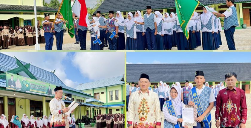 Buntok (Humas) – MTsN Barito Selatan secara resmi melantik pengurus Organisasi Siswa Intra Madrasah (OSIM) periode 2025/2026. Kegiatan yang berlangsung khidmat di halaman madrasah ini dihadiri oleh Kepala Madrasah, tenaga pendidik dan kependidikan, serta seluruh siswa pada Sabtu, 18 April 2026.
